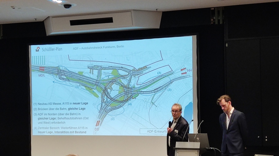In zwei Veranstaltungsvorträgen ging es zudem um ein konkretes Projekt und ein innovatives Projektabwicklungsmodell: Wolfgang Strobl, Geschäftsführer und Prokurist der Schüßler-Plan Ingenieurgesellschaft mbH, stellte zusammen mit Dominik Sonnek, BIM-Koordinator des Unternehmens, das Projekt "ADF - Umbau Autobahndreieck Funkturm, Berlin" vor. Hier ist beachtenswert, dass die Leistungsphasen 1-6 ganz im Sinne des BIM-Gedankens an ein Planungsbüro vergeben wurden. Der Schwerpunkt dieses einzigartigen und komplexen Projekts liegt auf der Koordination und Visualisierung der Ausführungsphasen. Univ.-Prof. Dr.-Ing. Matthias Sundermeier von der Technische Universität Berlin sprach zum Thema "Integrierte Projektabwicklung (IPA) - ein Paradigmenwechsel bei der Realisierung komplexer Bauvorhaben".