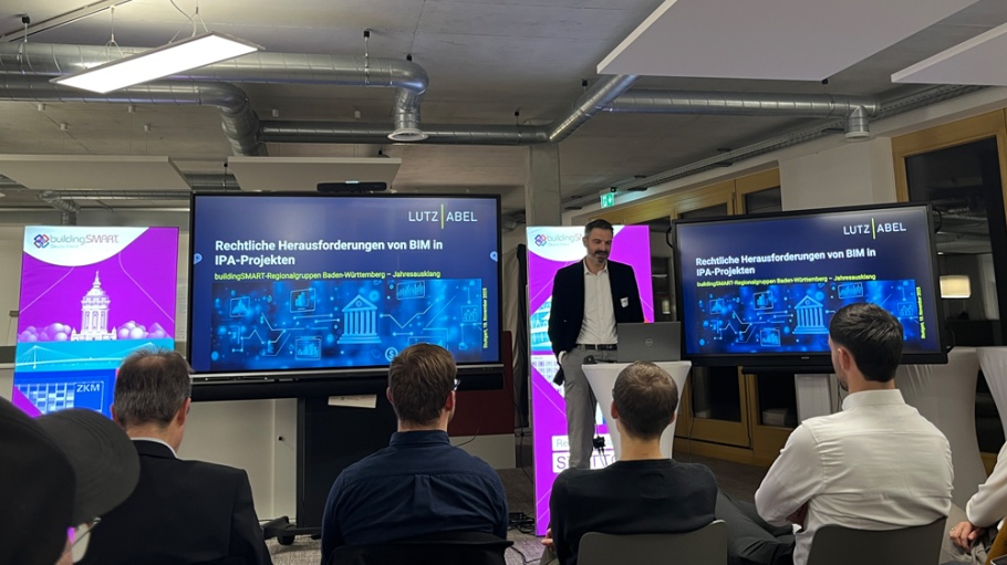 Als fachlicher Impulsgeber referierte Rechtsanwalt Ulrich Eix von LUTZ | ABEL Rechtsanwalts PartG mbB über rechtliche Herausforderungen von BIM in IPA-Projekten. Sein Vortrag diente zugleich als Auftakt zum buildingSMART-Bauherrenkongress 2026, der unter dem Motto "BIM, Lean und IPA" stehen und am 9. Juli 2026 stattfinden wird.