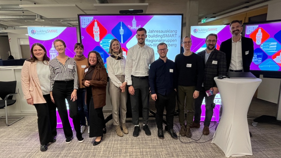 Am 18. November 2025 trafen sich unsere buildingSMART-Regionalgruppen Baden-Württemberg zum gemeinsamen Jahresausklang an der Hochschule Karlsruhe. Im Rahmen der Veranstaltung am Institut zur Wissenschaftlichen Weiterbildung (IWW) bestätigten die Teilnehmer im vorab durchgeführten Koordinierungskreis-Treffen die vier Gruppebnsprecherinnen und -sprecher Florian Keim, Alicia Kraft, Christof Leiss und Prof. Michael Korn in ihren Ämtern.